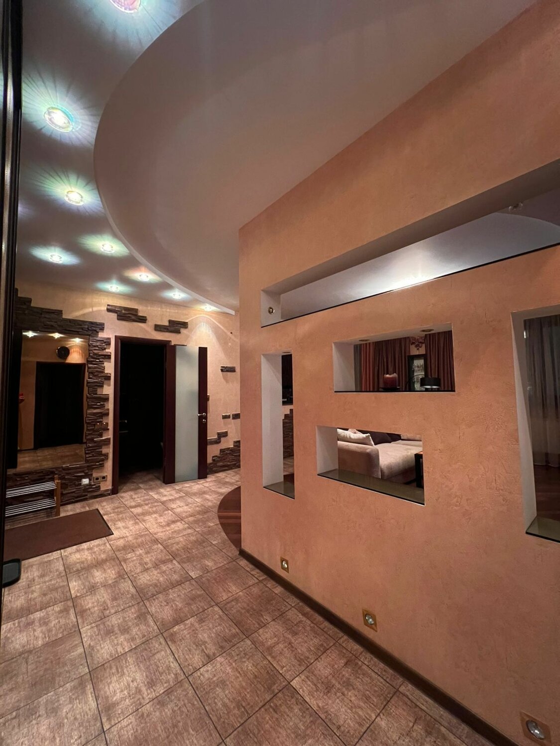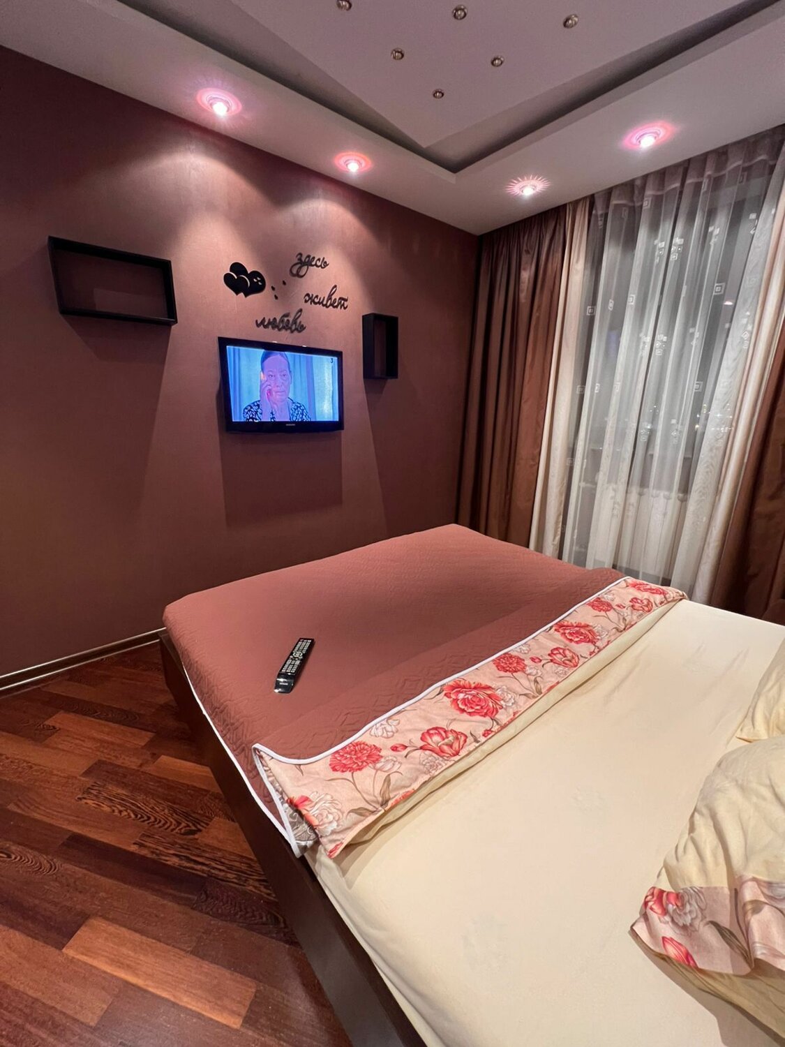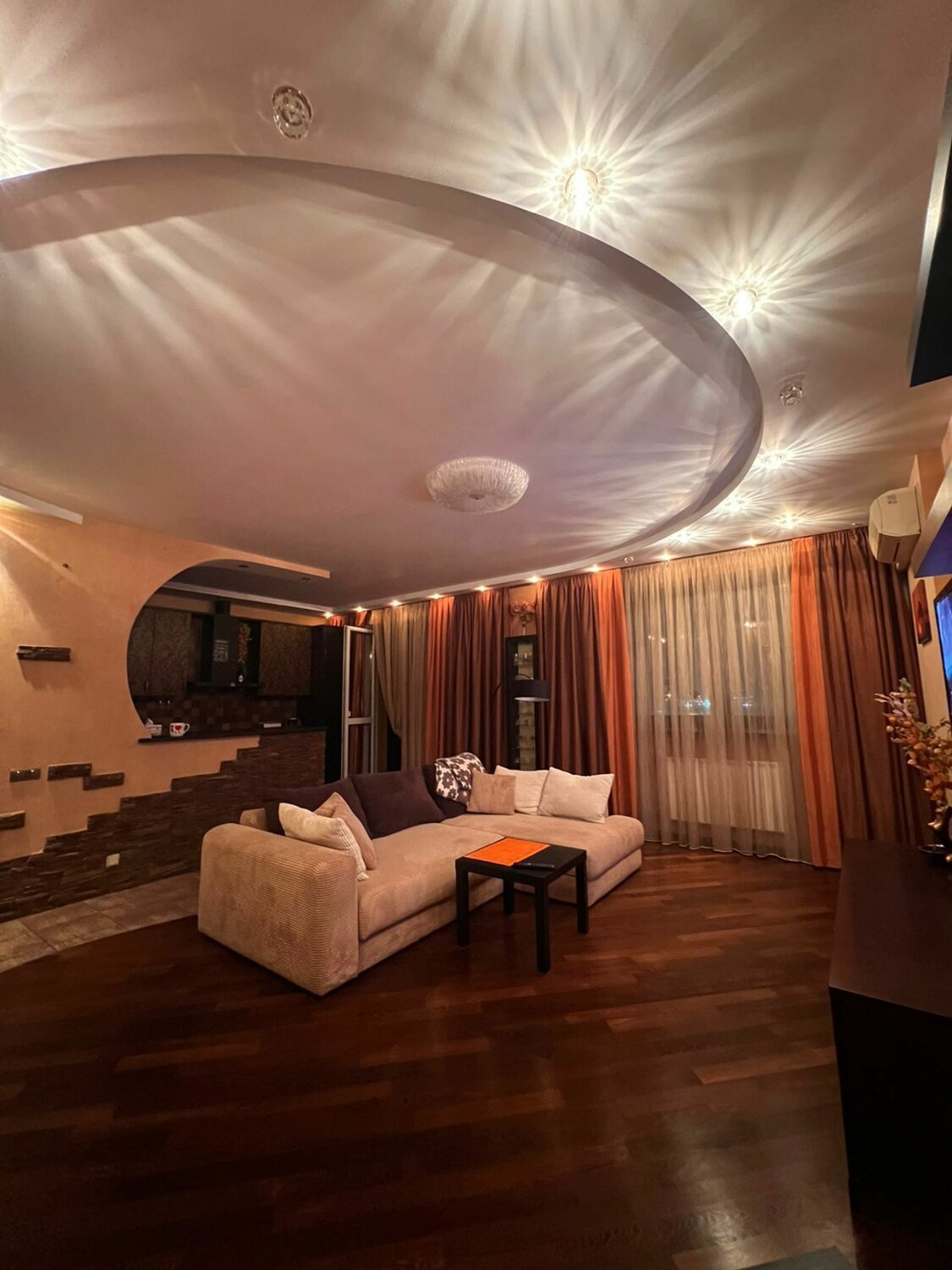 Квартира предлагается с мебелью, как на фото: прихожая, кухня, журнальный стол, диван, спальня, полки, встроеные шкафы, телевизоры в каждой комнате, шторы на окнах все для проживания есть.